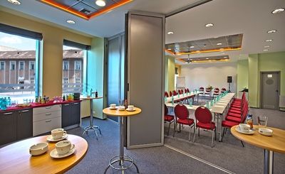 Capacitate pentru 15 de persoaneSălile sunt dotate cu videoproiectoare, sisteme multimedia și mobilier de calitate superioară (din lemn masiv si piele), care completează atmosfera business.